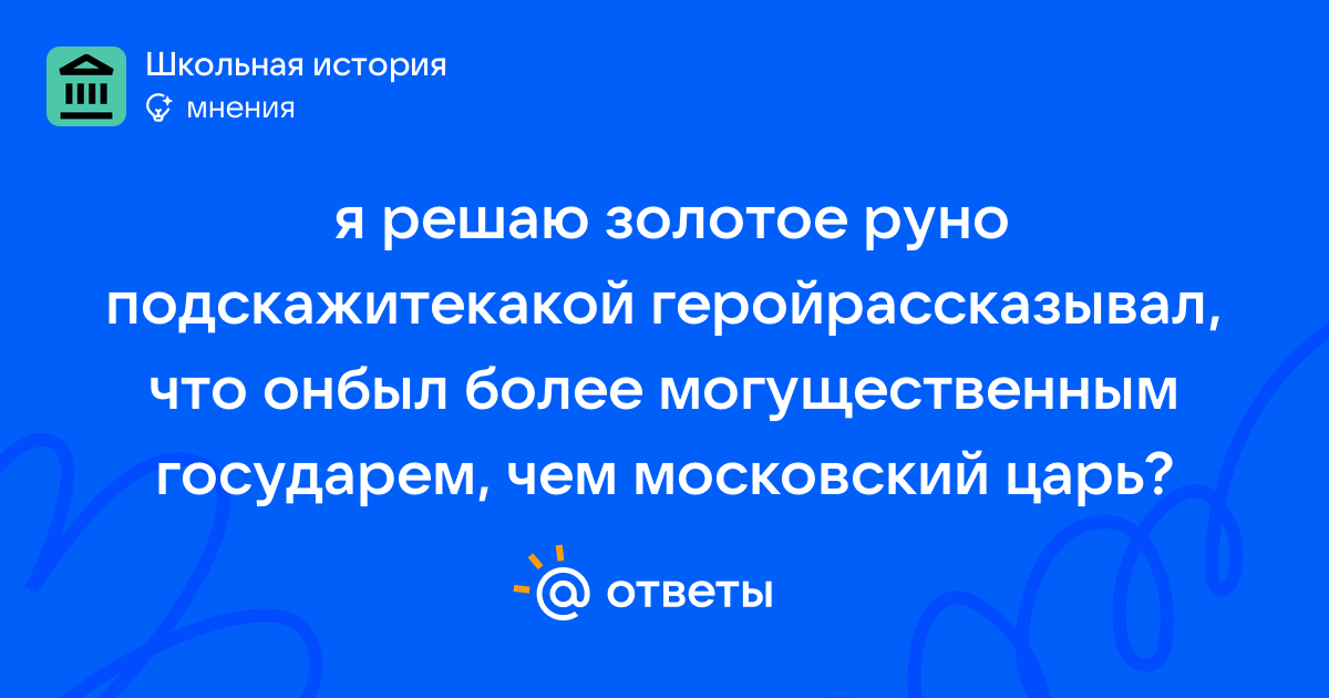 Я решаю золотое руно подскажитекакой геройрассказывал, что онбыл более могущественным государем, чем московский царь?