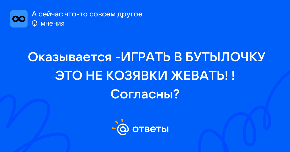 Оказывается -ИГРАТЬ В БУТЫЛОЧКУ ЭТО НЕ КОЗЯВКИ ЖЕВАТЬ! ! Согласны?