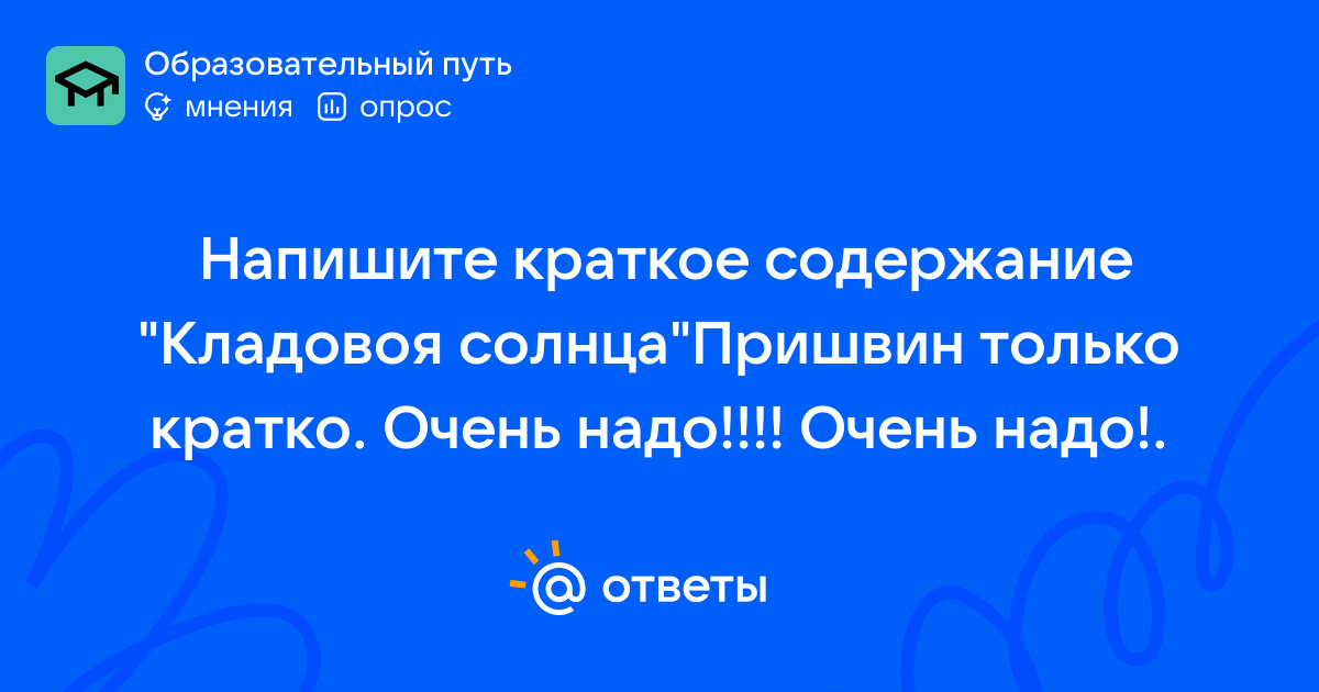 Напишите краткое содержание "Кладовоя солнца"Пришвин только кратко. Очень надо!!!! Очень надо!.