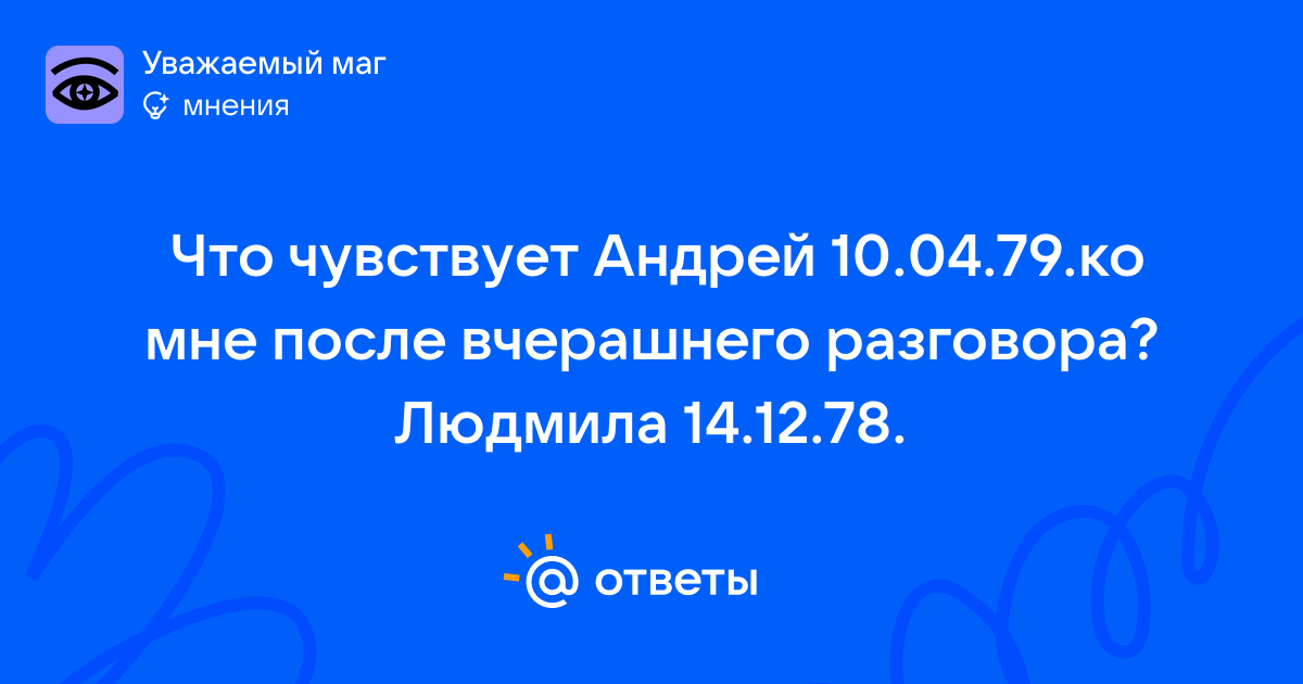 Что чувствует Андрей 10.04.79.ко мне после вчерашнего разговора? Людмила 14.12.78.