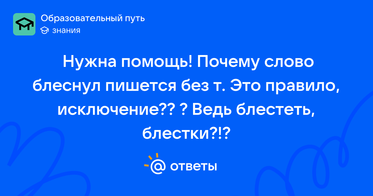 Нужна помощь! Почему слово блеснул пишется без т. Это правило, исключение?? ? Ведь блестеть, блестки?!?