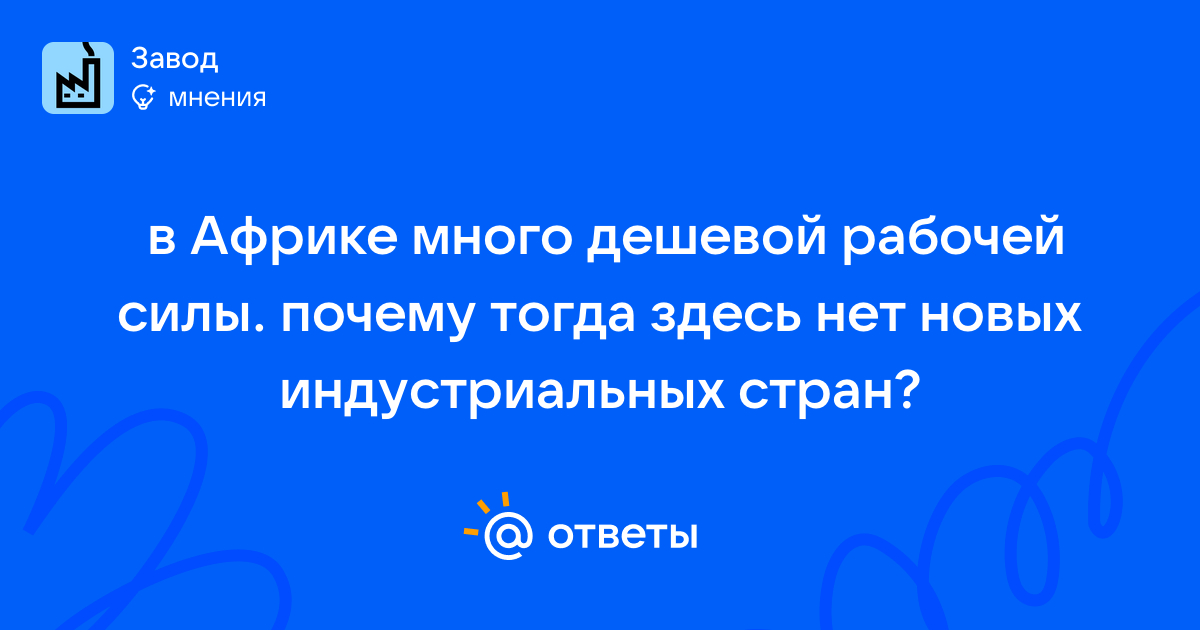 В Африке много дешевой рабочей силы. почему тогда здесь нет новых индустриальных стран?