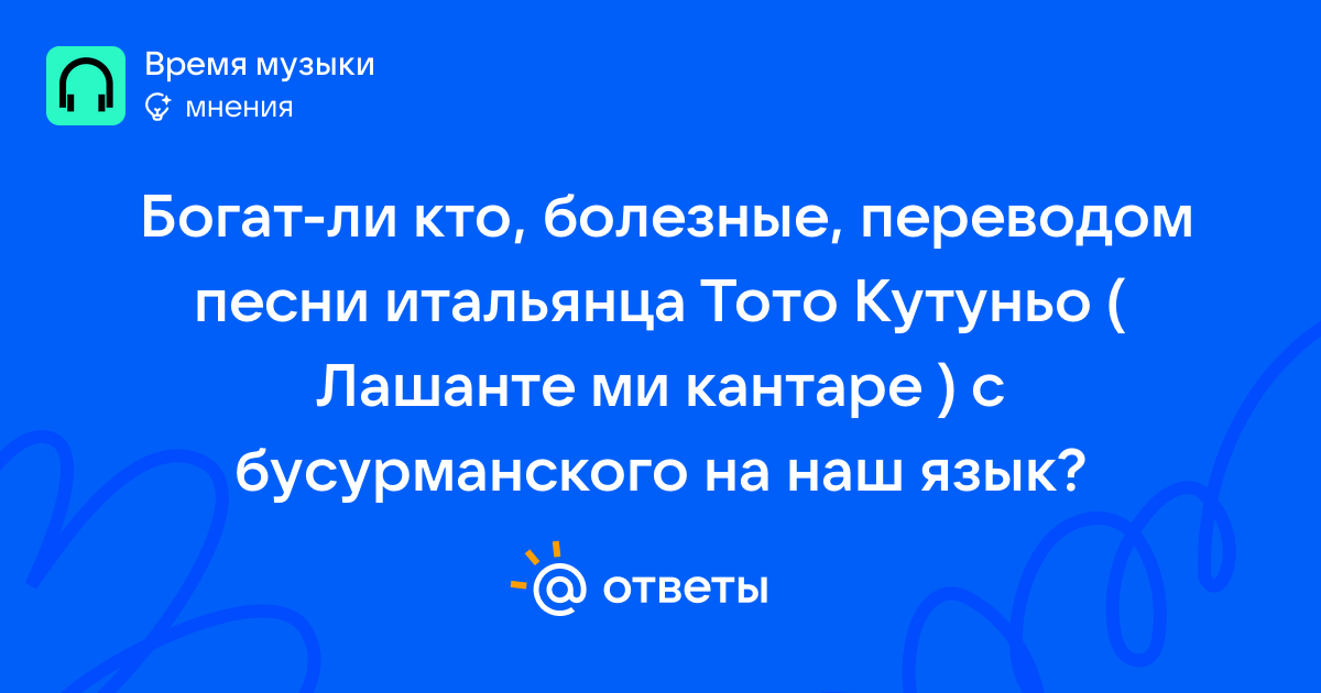 Богат-ли кто, болезные, переводом песни итальянца Тото Кутуньо ( Лашанте ми кантаре ) с бусурманского на наш язык?