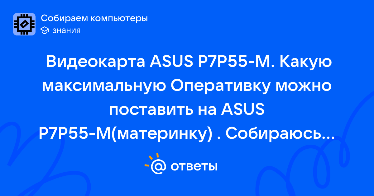 Видеокарта ASUS P7P55-M. Какую максимальную Оперативку можно поставить на ASUS P7P55-M(материнку) . Собираюсь менять