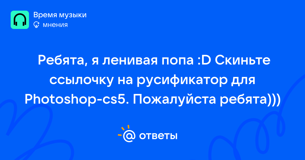 Ребята, я ленивая попа :D Скиньте ссылочку на русификатор для Photoshop-cs5. Пожалуйста ребята)))